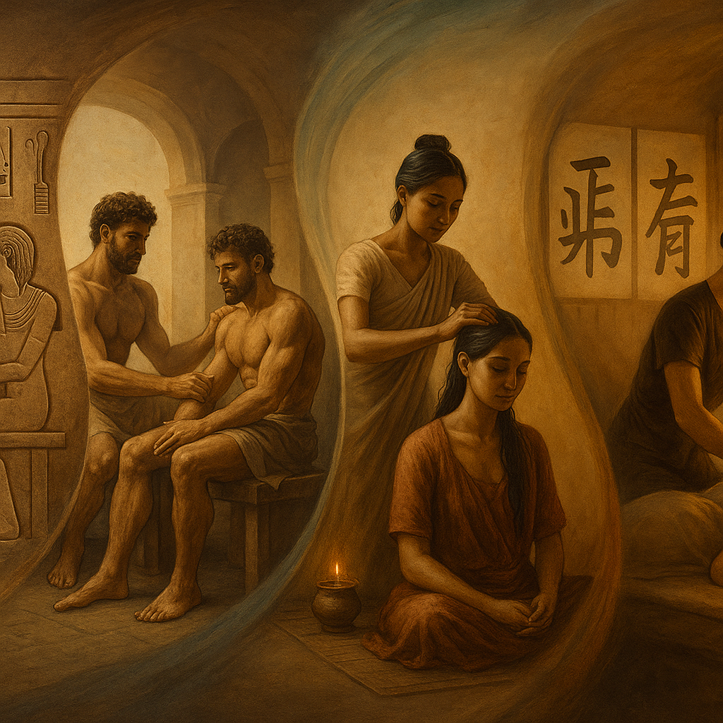 Das antigas civilizações do Oriente até os spas contemporâneos, a massagem sempre foi reconhecida como uma prática de cura, equilíbrio e bem-estar, unindo tradição, ciência e o poder do toque em cada época da história humana.